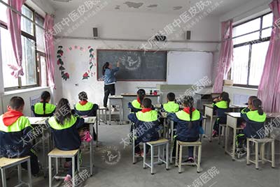 9月22日, 肤康中医皮肤病医院志愿者服务队携手太原电视台《生活享当当》记者,深入娄烦县赤土华村小学,与这里的贫困、留守儿童进行了一次面对面的交流,为他们带去了爱心物资与学习用品。